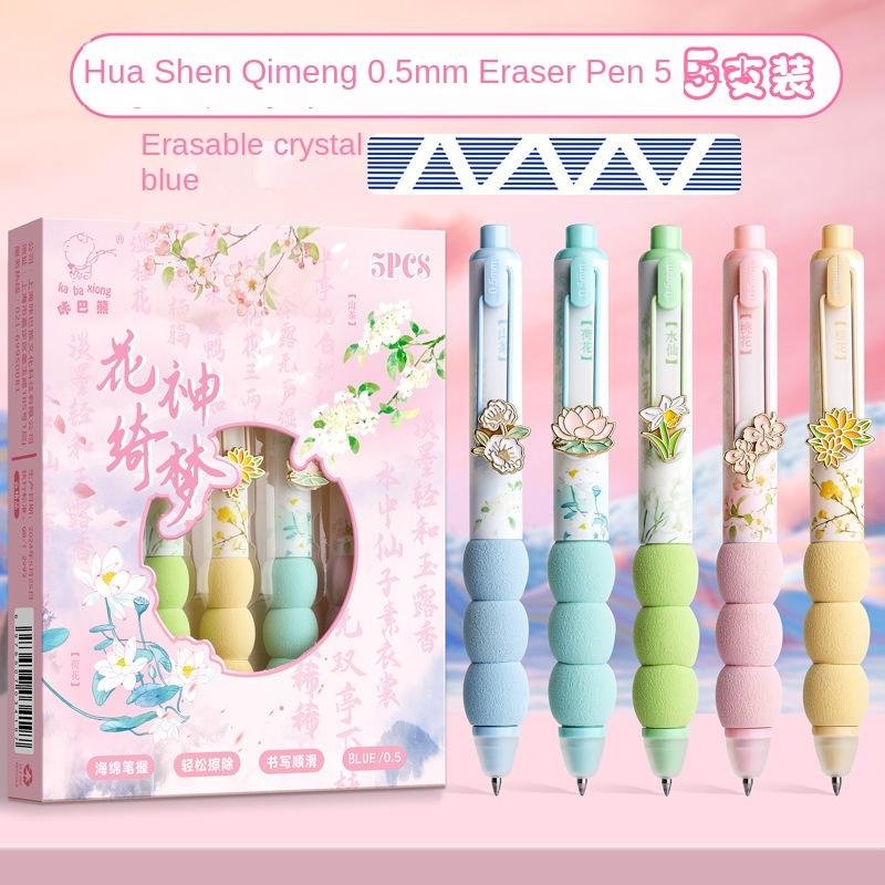 סט של 5 עטים יפהפיים וצבעוניים עם ספוג רך לאחיזה ופרח קטן שאפשר להחליק למעלה ולמטה (מעולה לפידג'טינג) (צבע הדיו שחור)