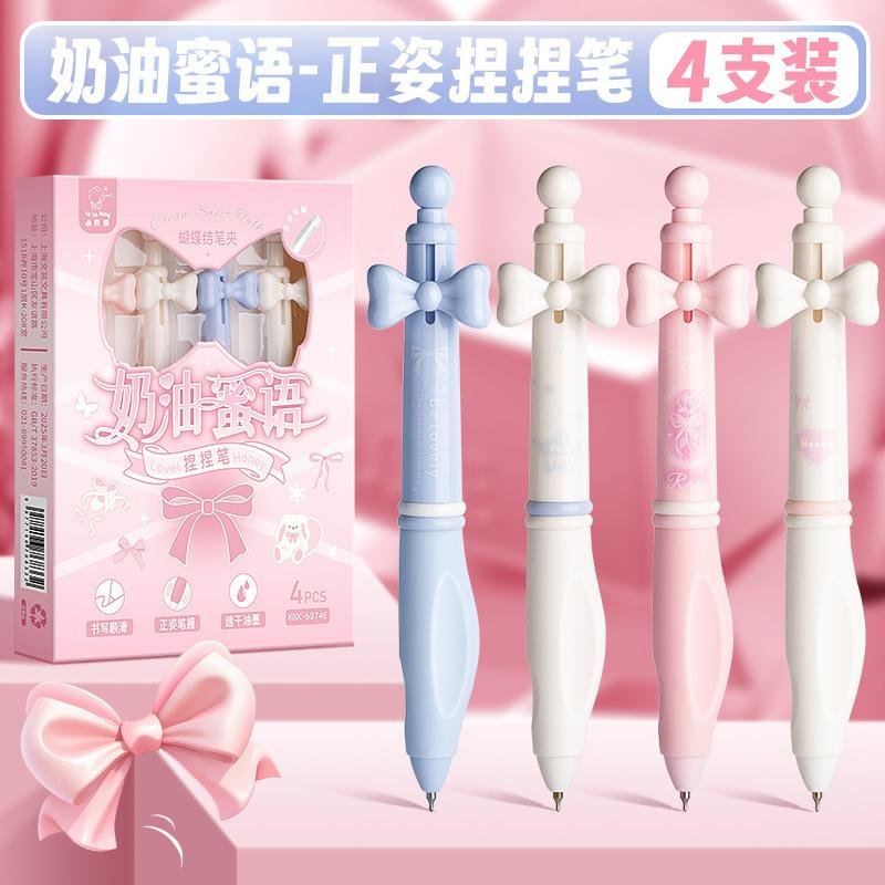 סט חמוד של 4 עטים יהפהפיים בעיצוב סרט עם ידיות אחיזה ארגונומיות 🩷 (צבע הדיו שחור)